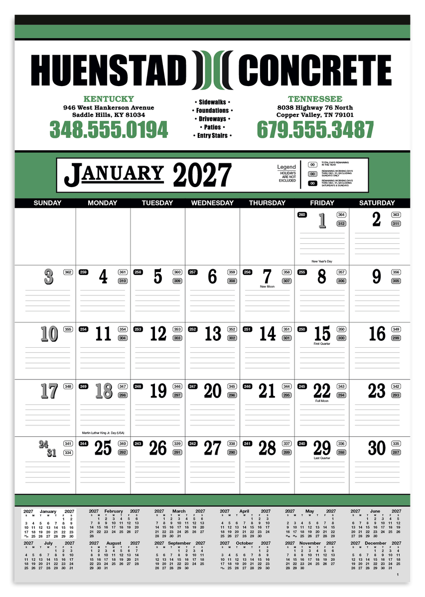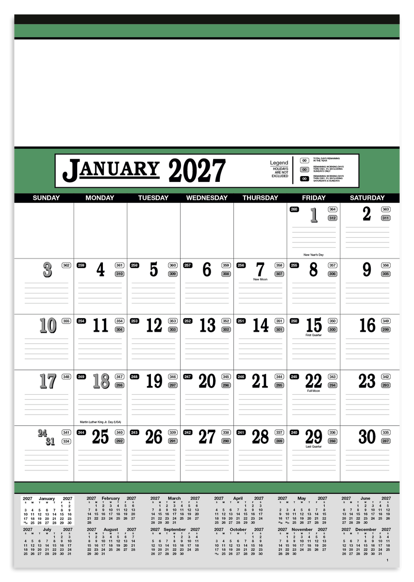 Stay organized with this 13-sheet calendar, featuring a full calendar along the bottom for quick reference. Lined date blocks make it easy to keep track of dates and stay on top of your schedule. The SFI® label means that materials used for this product have been responsibly sourced.
