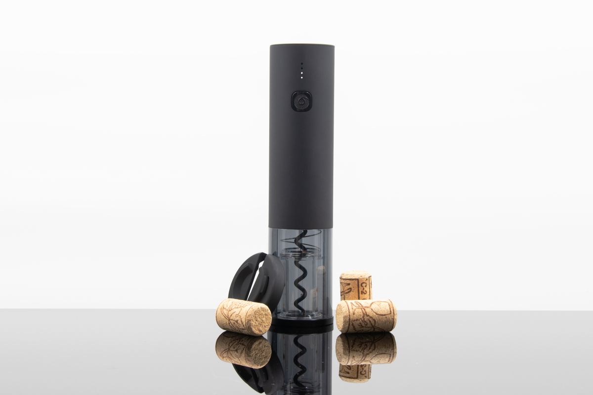 Brighten up your next celebration with this electric metal and rubber wine opener featuring a light-up, laser-engraved logo on the top. This handy kitchen accessory lets you easily open your favorite bottle in just 8 seconds. Use the included cable to charge the integrated battery—a blue LED light lets you know when it’s ready to go—and uncork up to 50 bottles before needing to recharge. The base of this convenient tool provides stability and also serves as a foil cutter. SCX Innovative Design covers this product with a 3-year warranty (excluding charging cables and imprint).