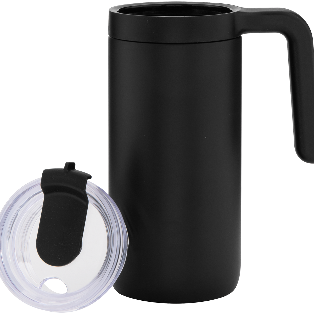 The Beacon 16 oz mug is made to keep your drinks at the perfect temperature, whether it's morning coffee or an afternoon iced tea. With double-wall stainless steel, vacuum insulation, and a clear threaded lid with a swivel closure, it's both functional and stylish. A sturdy plastic handle and matte finish make it easy to use and great for everyday sipping. Do not microwave. Hand wash recommended.